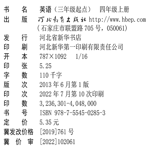 河北小学英语四年级上册(三年级起点)(适用2022年)