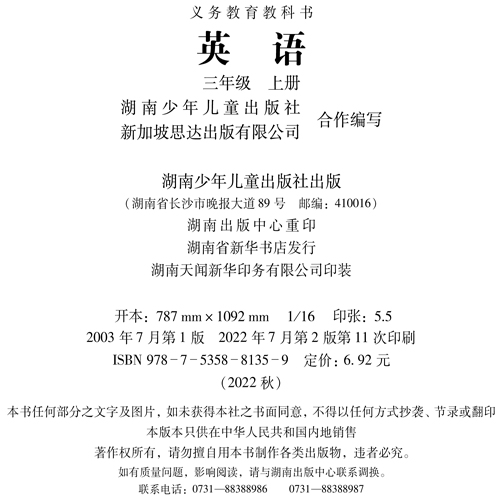 湖南少儿英语三年级上册(三年级起点)(适用2022年)