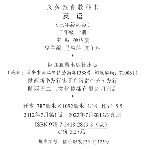 陕旅新版小学英语三年级上册(三年级起点)(适用2022年)