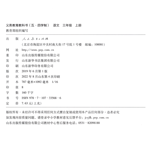 出版信息:2019年6月第1版 2022年8月山东第4次印刷
