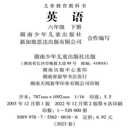 湖南少儿英语六年级下册(三年级起点)(适用2023年)