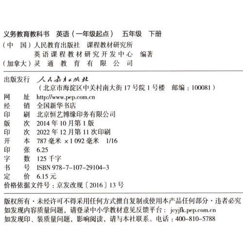 人教新起点小学英语五年级下册(一年级起点)(V2.0)(适用2023年)