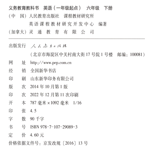 人教新起点小学英语六年级下册(一年级起点)(V2.0)(适用2023年)
