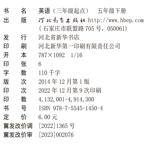 河北小学英语五年级下册(三年级起点)(适用2023年)