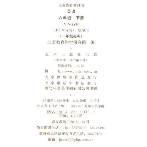 北京版小学英语六年级下册(一年级起点)(适用2023年)