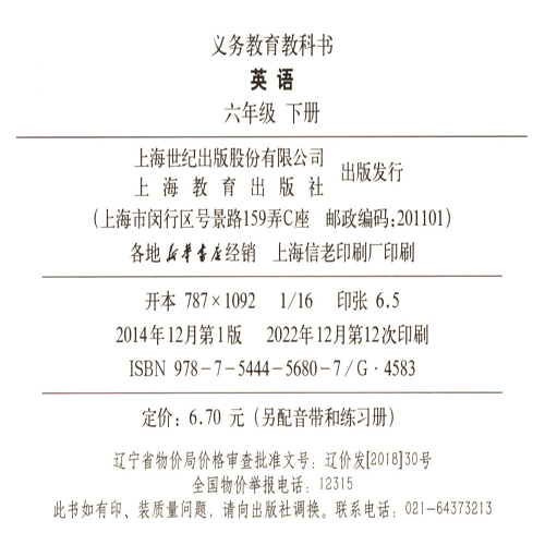 上海牛津版小学英语六年级下册(三年级起点)(V2.0)(适用2023年)