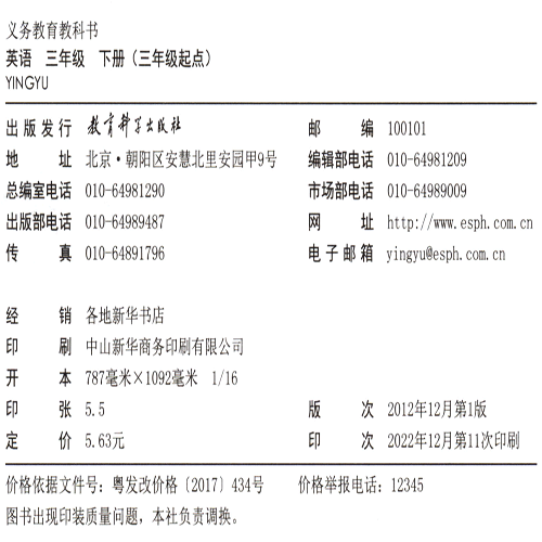 教科广东版小学英语三年级下册(三年级起点)(适用2023年)