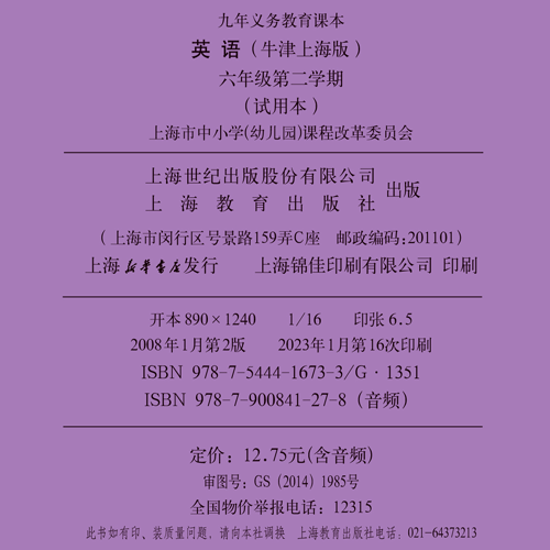 牛津上海版小学英语六年级第二学期(试用本)(适用2023年)